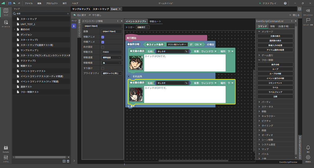 シナリオを演出するためのいろいろなイベントを組み合わせ、